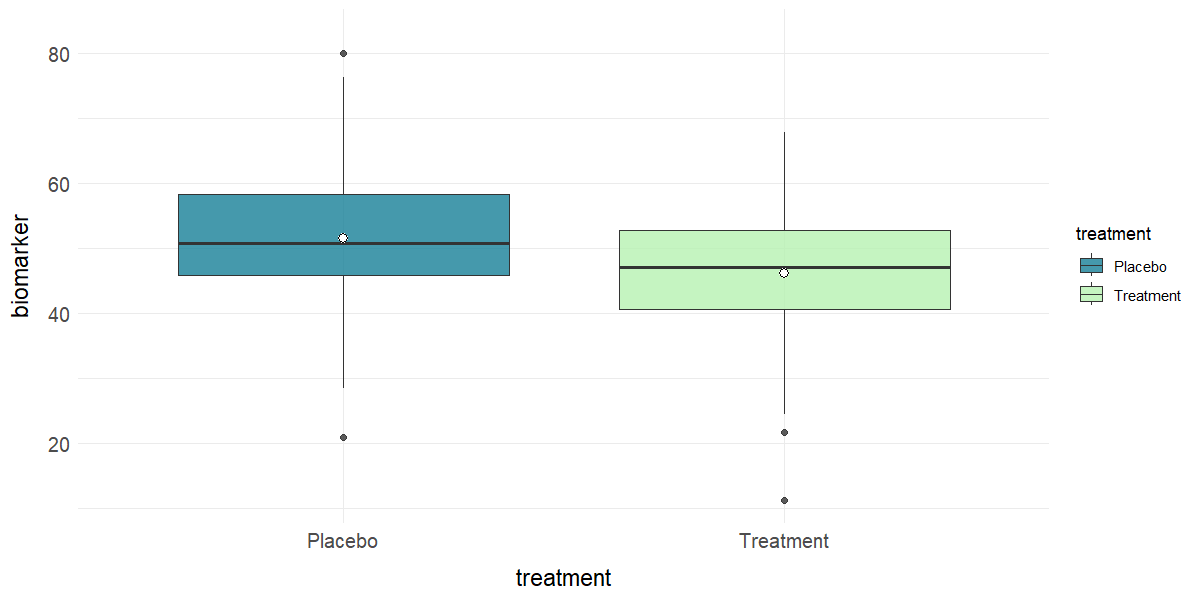 #> $ biomarker : num 48.2 22.2 51.2 43.4 44.5 ...