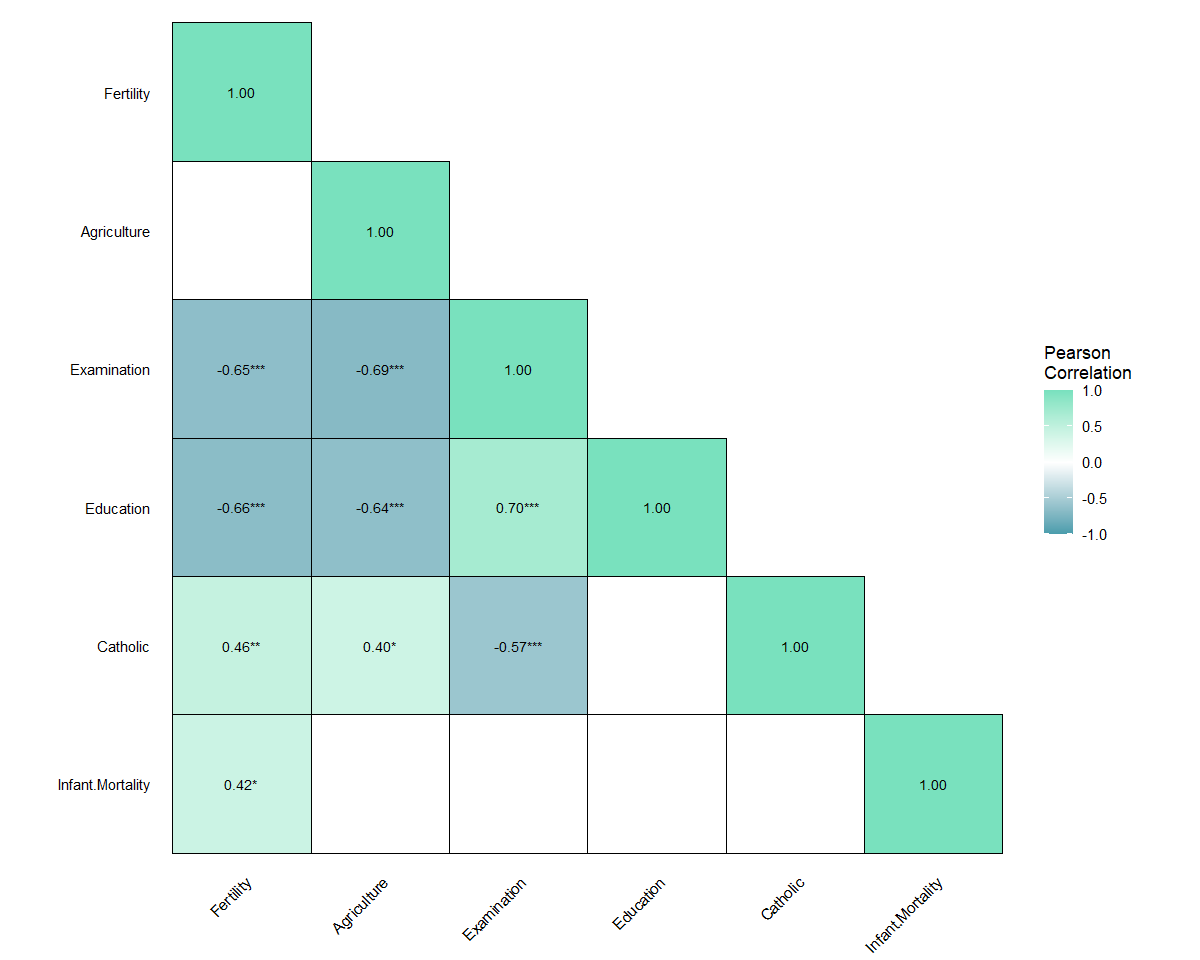 Generates publication-ready correlation matrix heatmaps with minimal code using ggplot2.